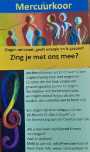 Maar ook wanneer je op zoek bent naar iets waaruit je nieuwe energie kunt putten, nodigen wij je van harte uit om eens te komen luisteren en meezingen in ons Mercuurkoor.